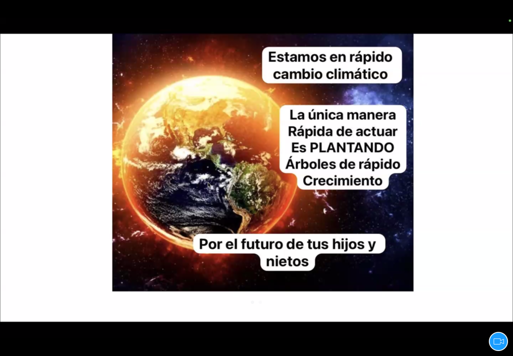 Como solución concreta, se presentó la plantación de árboles de rápido crecimiento, como un medio eficaz para reducir los niveles de CO2. A nivel global, se ha establecido la meta de plantar un trillón de árboles durante el período comprendido entre 2020 y 2030, acción que permitiría absorber aproximadamente el 75% de las emisiones de CO2.