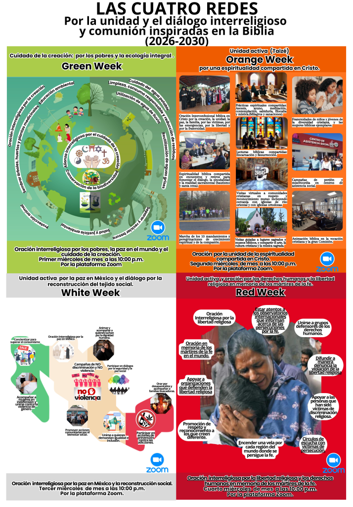 • Tercer miércoles: Oración Interreligiosa por la paz en México y en el mundo.